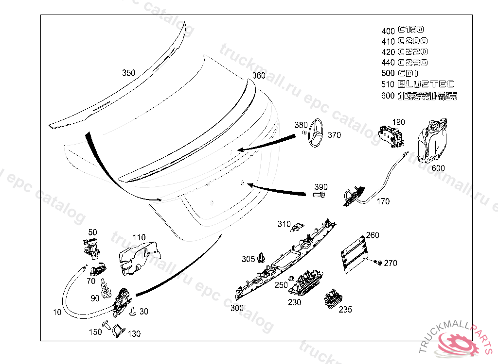 MODEL PLATE ON REAR LID C180, TO BE ADAPTED DURING ASSEMBLY