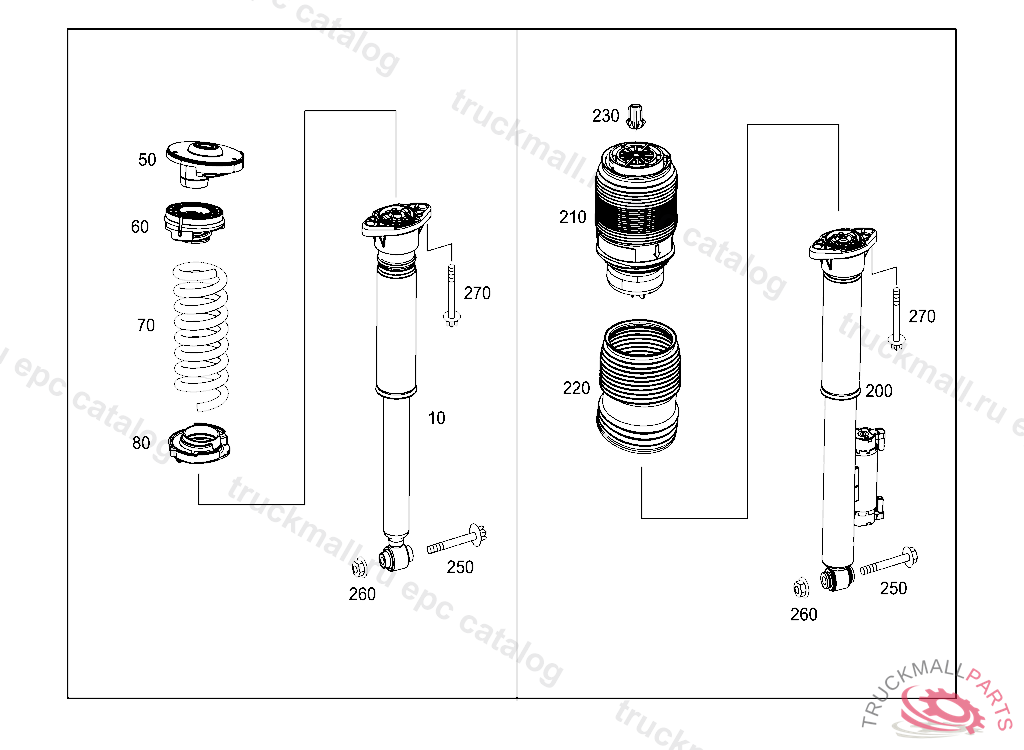 HELICAL SPRING COLOR CODING: 2 X RED/1 X GRAY, UPON EXCHANGING SPRING, ALWAYS REPLACE LOWER SPRING SEAL BEI FEDERTAUSCH GRUNDSAETZLICH MITTLERE FEDERBEILAGE OBEN A 205 324 04 84 MIT ERNEUERN