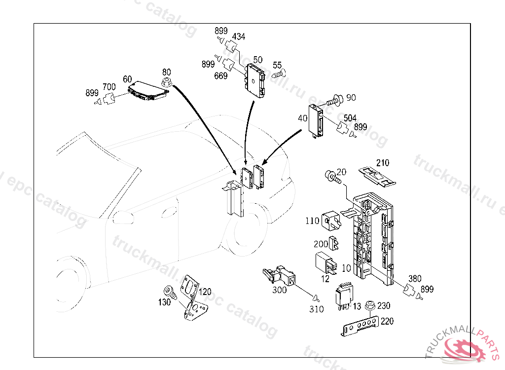 ELECTRICAL BASIC MODULE SIGNAL ACQUISITION AND ACTUATION MODULE WITH REAR FUSE AND RELAY MODULE SAM/SRB N10/2, FIRST EXHAUST STOCK OF OLD PARTS UP TO IDENT NO. 07312420060301 F 20048120060228, Replaced By: A2095451701