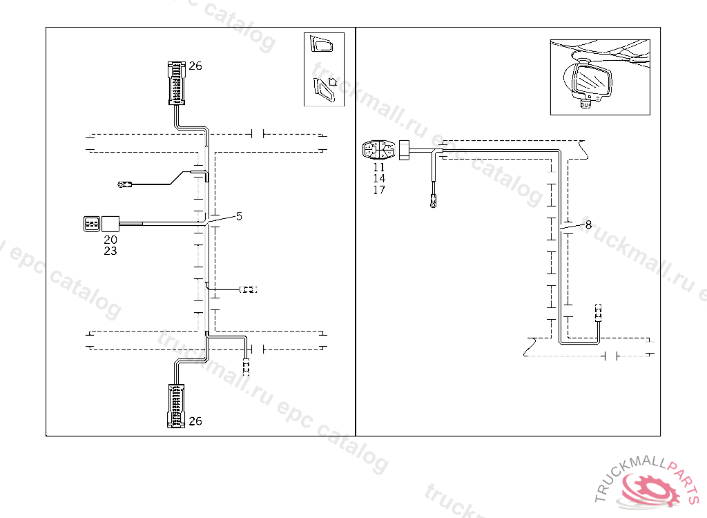 CABLE HARNESS ELECTRICALLY FOLDING OUTSIDE REARVIEW MIRROR, A 394036 X 004166 EXCEPT CODE 807 ALSO INSTALLED IN VEHICLE TO A 394035 / X 004165 WITH CODE 808