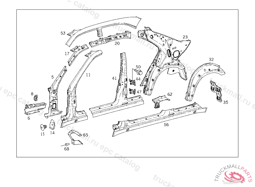 SIDE PANEL , FIRST EXHAUST STOCK OF OLD PARTS UP TO IDENT NO.AEJ 99/1 THE WINDOW AIRBAG MOUNTING SUPPORTS MUST BE REMOVED FOR VEHICLES NOT EQUIPPED WITH WINDOW AIRBAGS, Replaced By: A2106306301