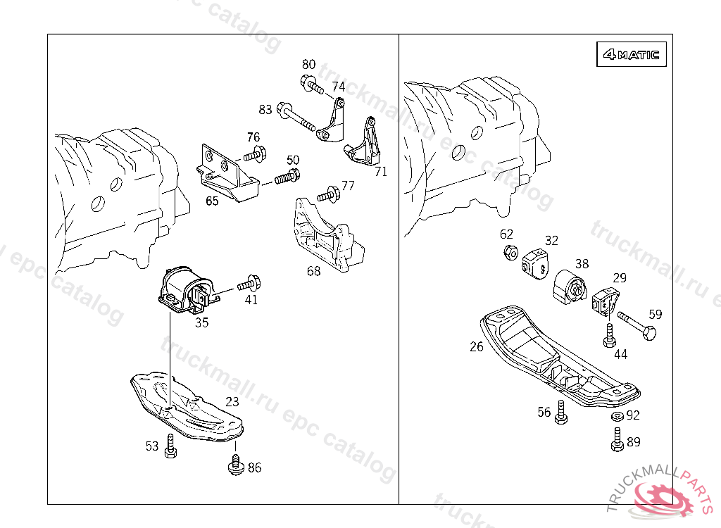 ENGINE SUPPORT REAR, A 177063 J 024801 EXCEPT CODE 807 ALSO INSTALLED IN VEHICLE FROM A 177064, J 024802 WITH CODE 806