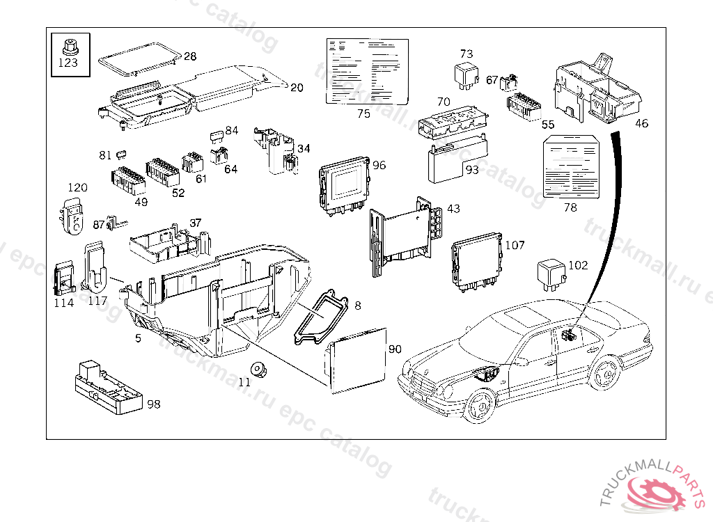 FUSE BOX CENTRAL ELECTRICAL SYSTEM SAM, A 519674 F 619721 EXCEPT CODE 807 ALSO INSTALLED IN VEHICLE TO A 519673, F 619720 WITH CODE 808