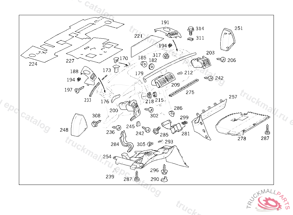 INSTRUMENT PANEL , FIRST EXHAUST STOCK OF OLD PARTS UP TO IDENT NO. A 219257J 031122, Replaced By: A2106805187