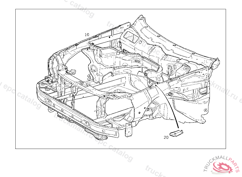 COWL WITH FIRE WALL, ORDER ADDITIONALLY FOR USE WITH HIGH-MOUNTED RADIATOR: 1 X 210 620 00 72 FRONT CENTRAL STIFFENING 2 X 210 628 08 31 ADAPTER, RADIATOR MOUNTING, USED WITH HIGH MOUNTED RADIATOR 4 X 201 990 02 50 NUT ORDER ADDITIONALLY FOR USE WITH ELECTRONIC STABILITY PROGRAMM (ESP) CODE 472 1 X 210 620 76 14
