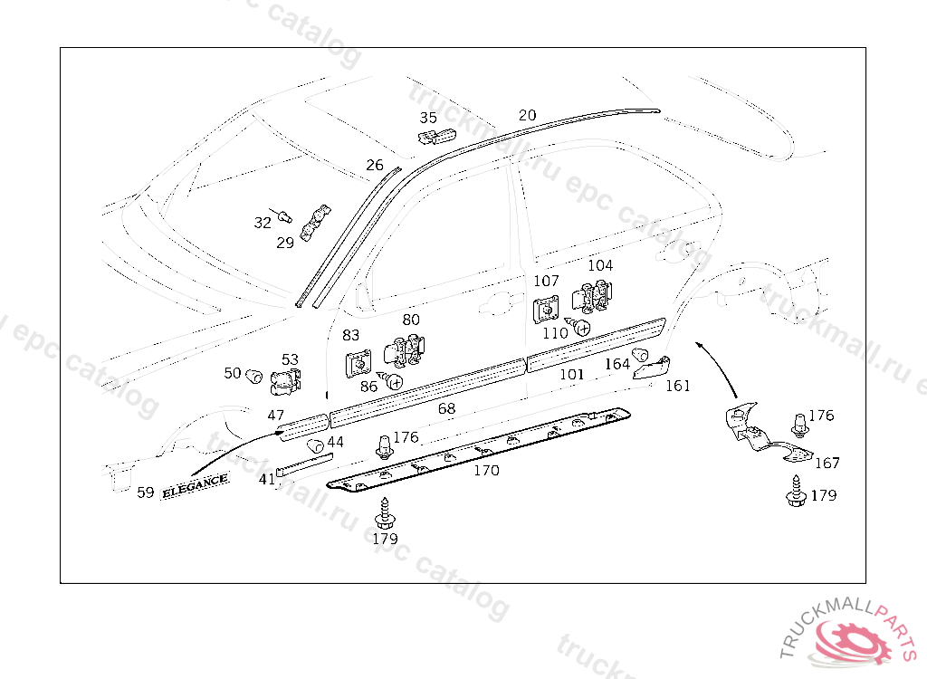 LEDGE LEFT REAR DOOR, CENTRAL ELEGANCE