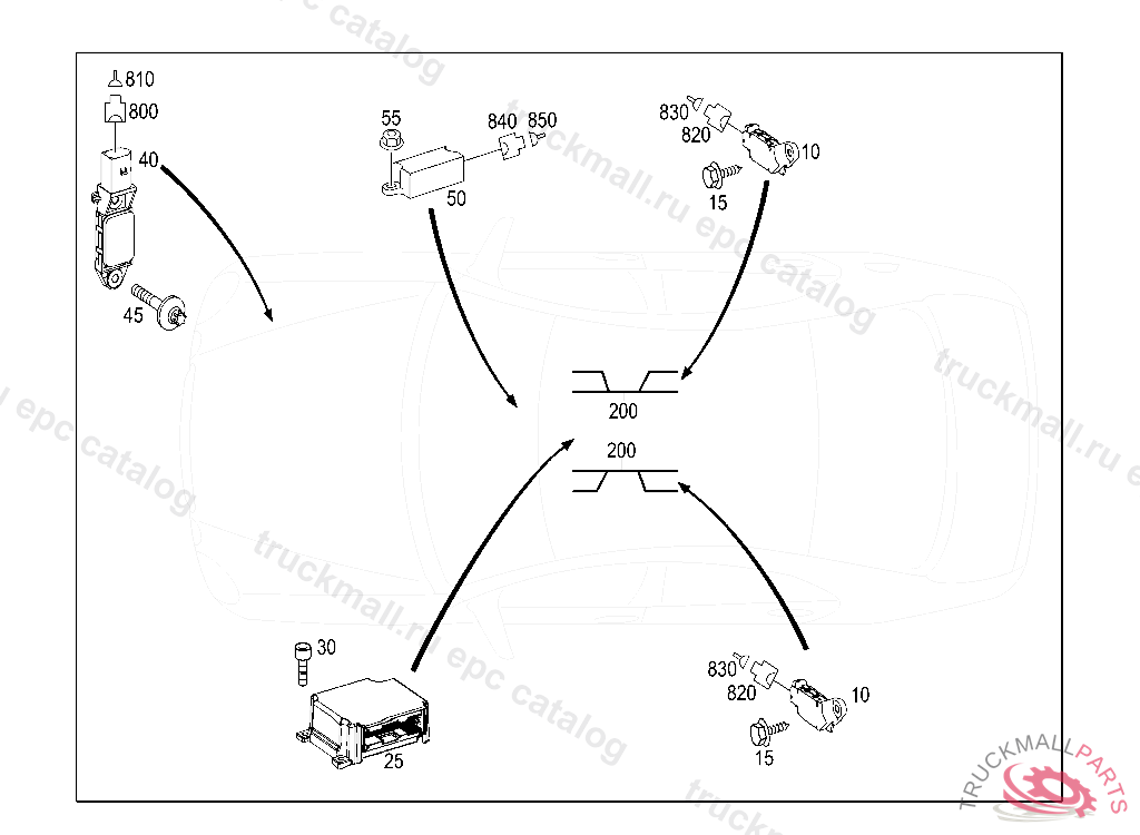TRIGGER DEVICE AIRBAG CONTROL MODULE TO TUNNEL ROOF REINFORCEMENT BOSCH, A 07258620060228 FIRST EXHAUST STOCK OF OLD PARTS UP TO IDENT NO. A 15174120080930, Replaced By: A2118705885