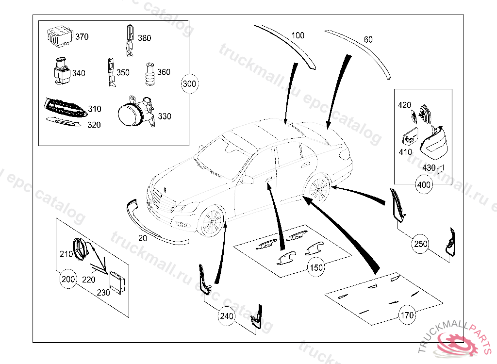 ORNAMENTAL MOLDING PARTS KIT, AT ROCKER PANEL AND REAR BUMPER