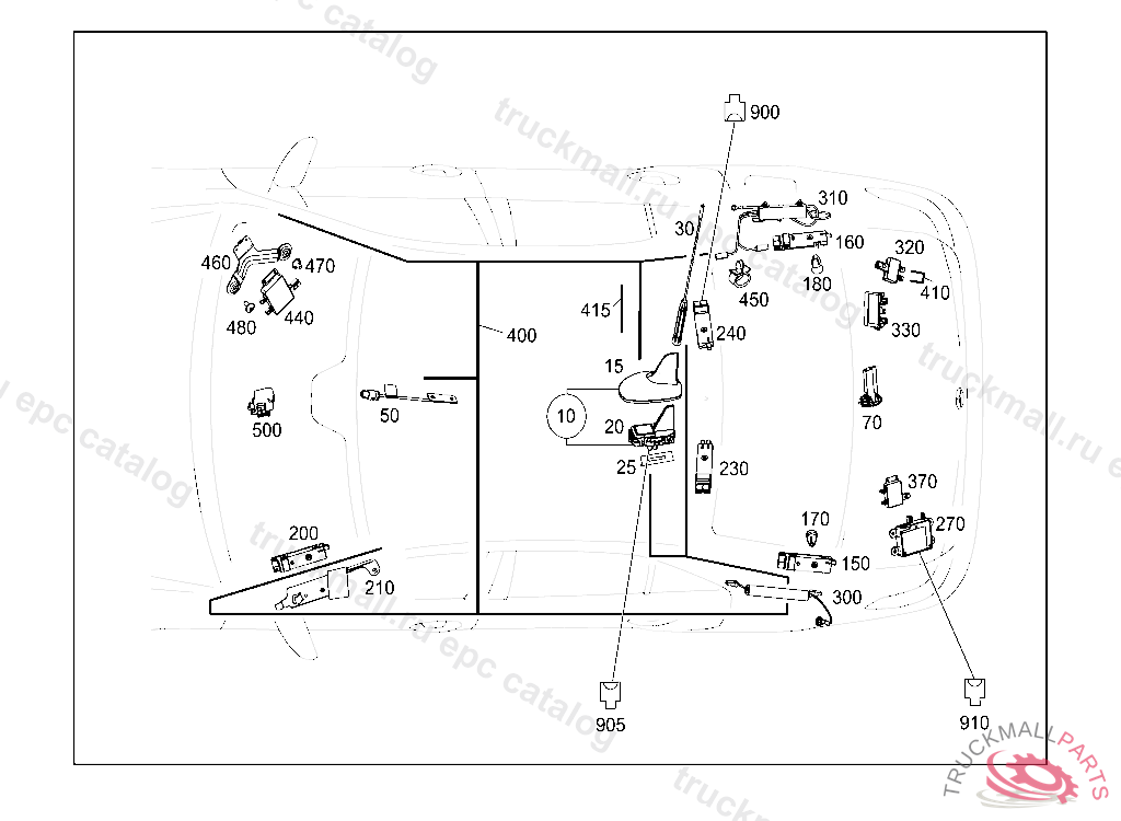 ANTENNA AMPLIFIER AT ROOF FRAME, REAR RIGHT