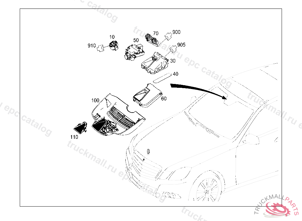 CONTROL UNIT WINDSHIELD TOP, FIRST EXHAUST STOCK OF OLD PARTS UP TO IDENT NO. A 20131220 PART MUST BE CHECKED AFTER INSTALLATION FOR CURRENT FLASHWARE, Replaced By: A0009000805