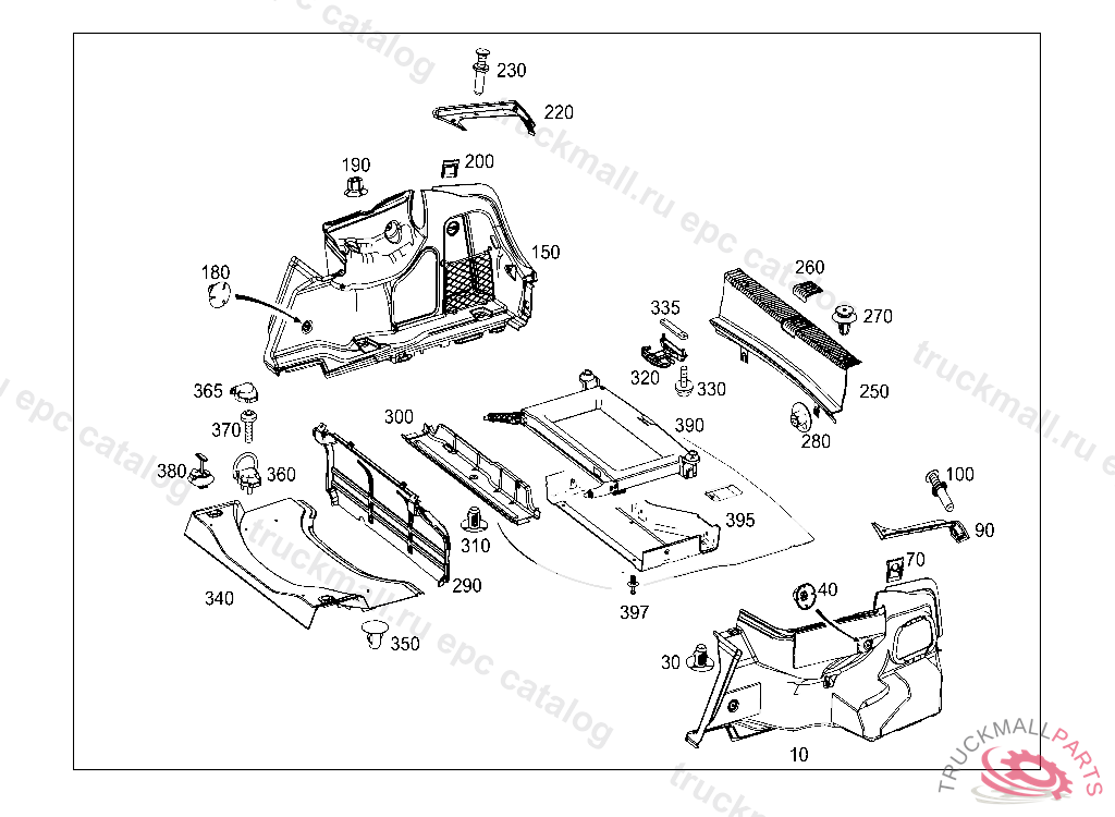 COVER TRUNK FLOOR FRONT, FIRST EXHAUST STOCK OF OLD PARTS UP TO IDENT NO. A 28551820100630 L 01315220101130 V 00118220101130 9051QFT212A0665 BLACK, Replaced By: A2126930033