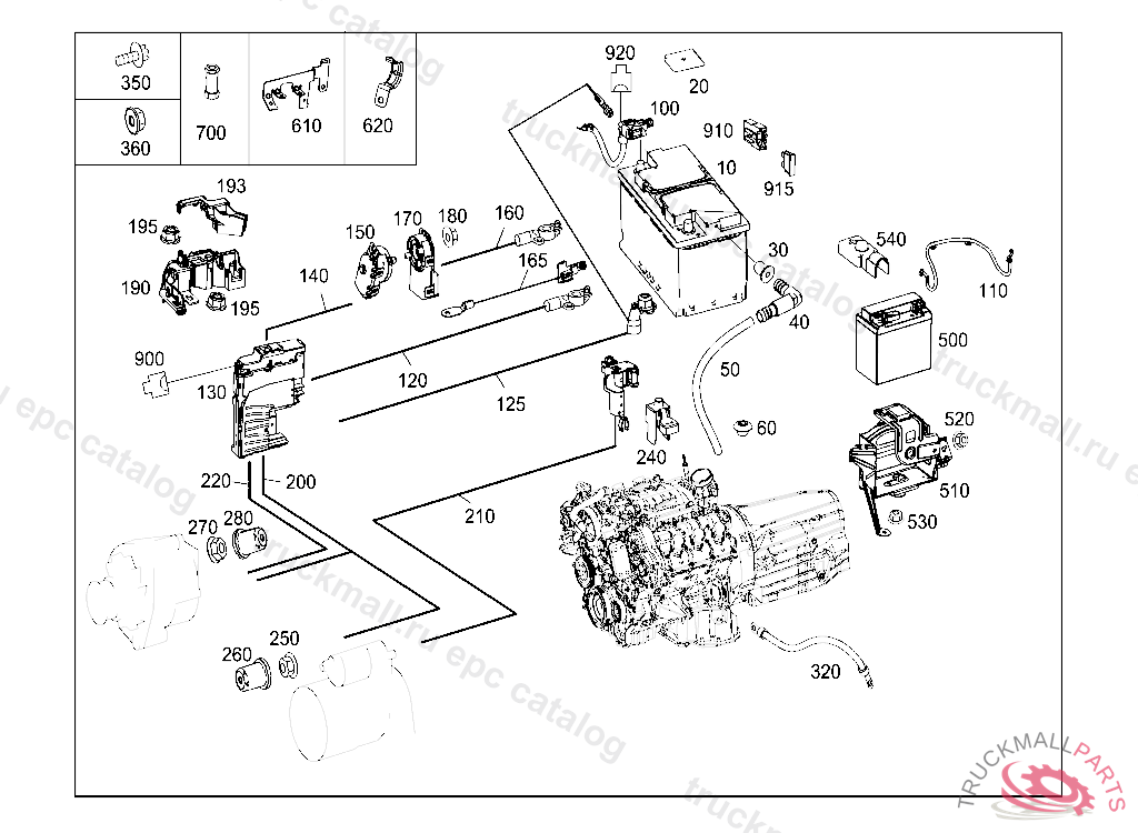ENGINE WIRING HARNESS FROM BATTERY TO STARTING MOTOR, FIRST EXHAUST STOCK OF OLD PARTS UP TO IDENT NO. A 79859520130411, Replaced By: A2124405558