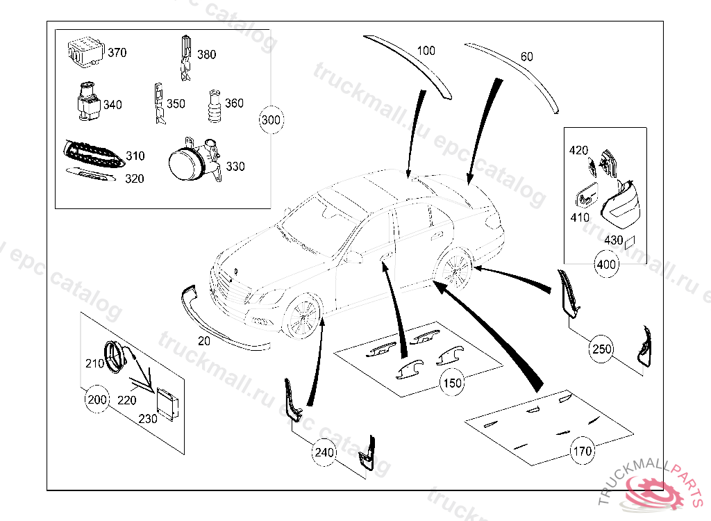 ORNAMENTAL MOLDING PARTS KIT, AT ROCKER PANEL AND REAR BUMPER