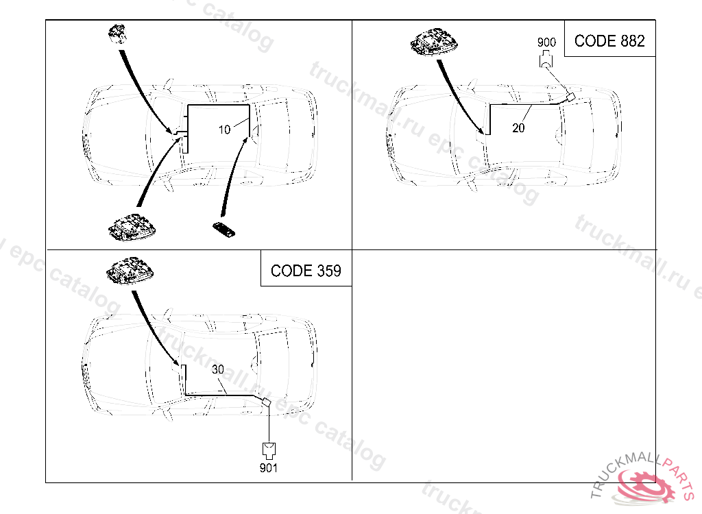 ELECTRICAL WIRING HARNESS ILLUMINATION, MAKE-UP MIRROR, RAIN/LIGHT SENSOR AND REAR COMPARTMENT LAMP, A 42774120110304 L 01695720110228 V 00120720110228