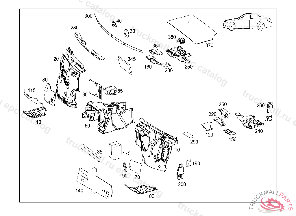 SOUNDPROOFING FIRE WALL,RIGHT, FIRST EXHAUST STOCK OF OLD PARTS UP TO IDENT NO. A 11333920131104, Replaced By: A2126821028