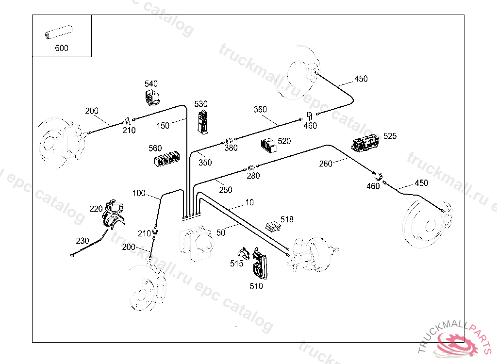 LINE FROM PRESSURE RETAINING VALVE TO LEFT REAR BRAKE HOSE 2655 MM