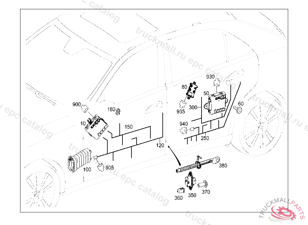 ELECTRICAL WIRING HARNESS LEFT REAR DOOR, DOOR SEPARATION POINTTO CONTROL UNIT AND CONSUMER