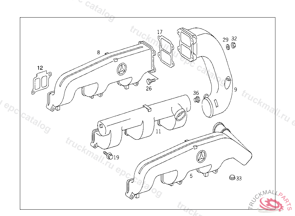INTAKE MANIFOLD , FIRST EXHAUST STOCK OF OLD PARTS UP TO ENGINE 444466YEAR OF MANUFACTURE 1997, Replaced By: A3661413001