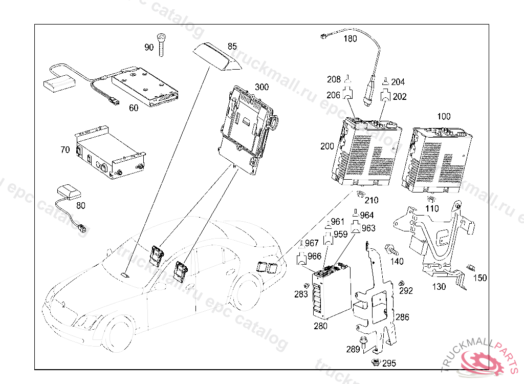 PIN BUSHING HOUSING DOOR CONTROL UNIT AT REAR DOOR, LEFT AND RIGHT 8-PIN MQS,N69/3 N69/4