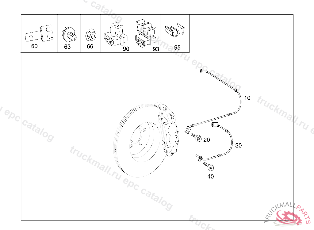 BRACKET WHEEL SPEED SENSOR AND BRAKE PAD INDICTOR ON FRONT AXLE, A 290167 EXCEPT CODE 805 ALSO INSTALLED IN VEHICLE TO A 290166 WITH CODE 806