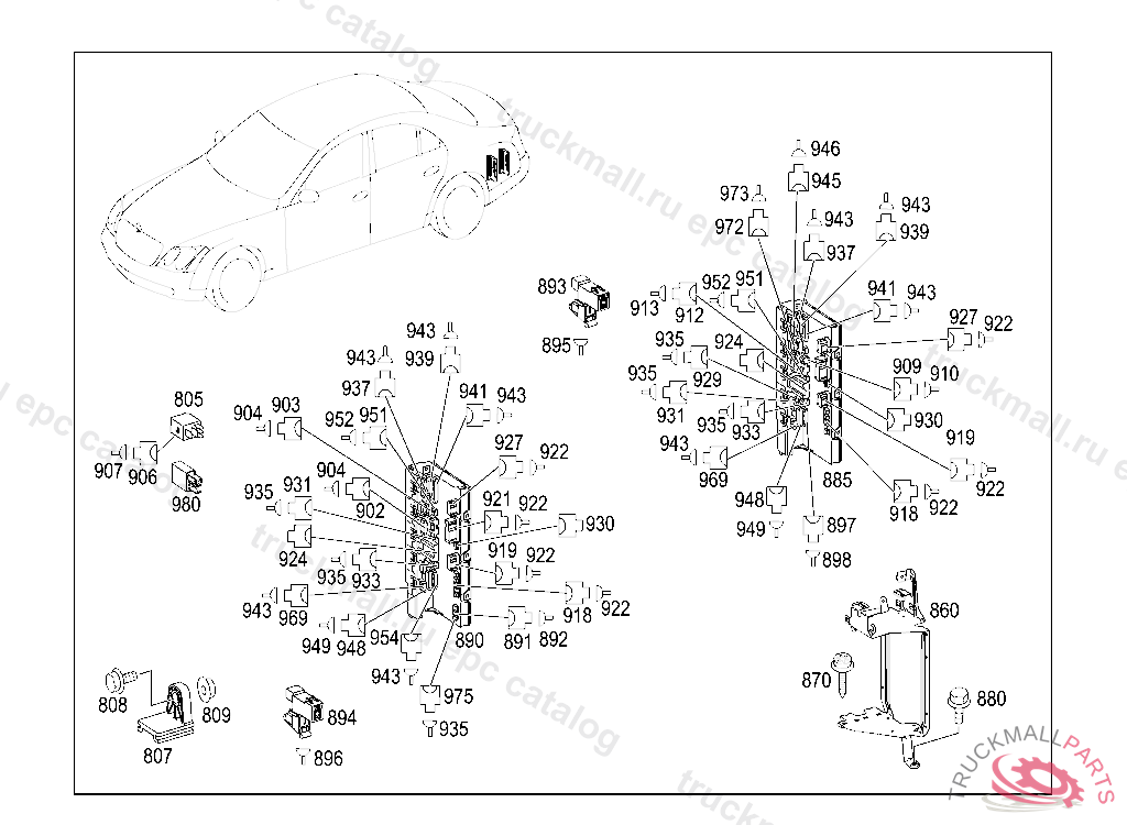 FUSE BOX TRUNK, LEFT REAR 2 FUSE AND RELAY MODULE, A 00007420030121 A 00275720090930