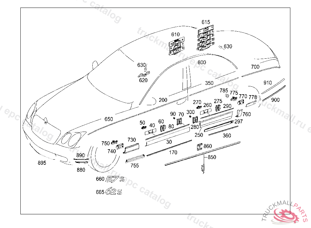 LEDGE PROTECTIVE STRIP TO RIGHT REAR FENDER, TO BE PAINTED PRIOR TO INSTALLATION CAUTION! WHEN ORDERING ES2 NO TO BE QUOTED: 9999 9999QFT240L9999 COLORLESS
