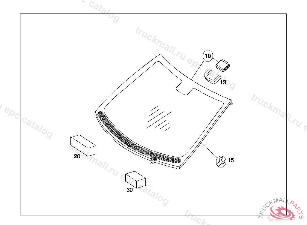 WINDSHIELD WITH HEAT REFLECTION WITHOUT HEATER, IMPORTANT! ALSO ORDER ANTENNA, SEE GROUP 82, SUBGROUP 345