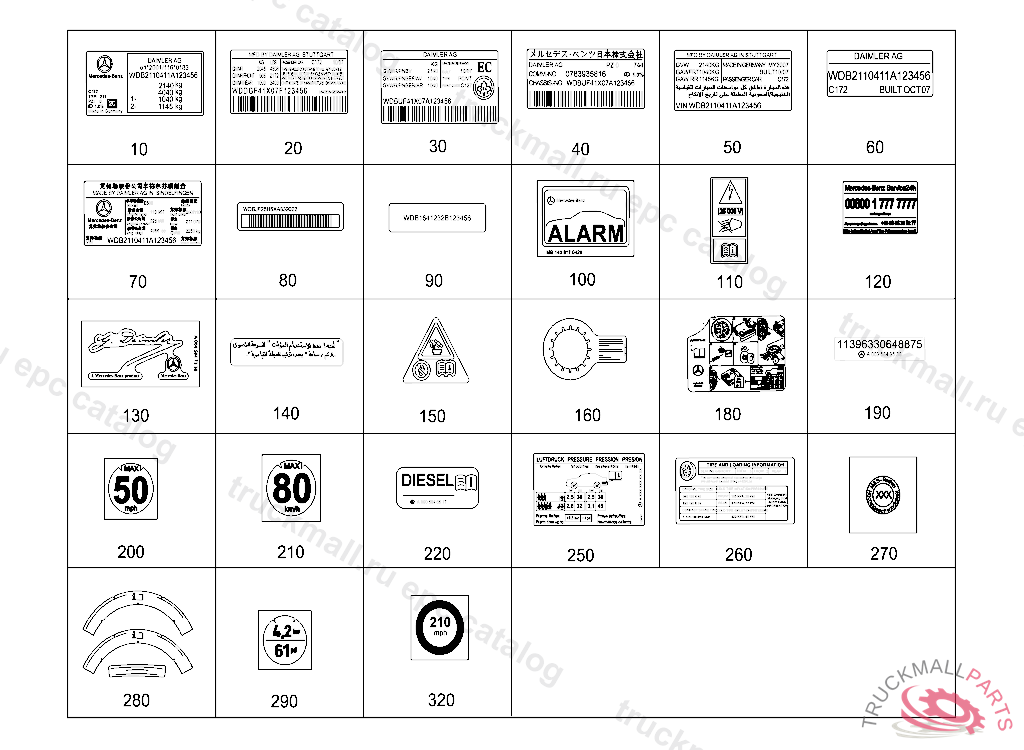 GUIDE SIGN AT B-PILLAR WITH MANUFACTURER NAME DAIMLER AG, THEFT-RELEVANT PART