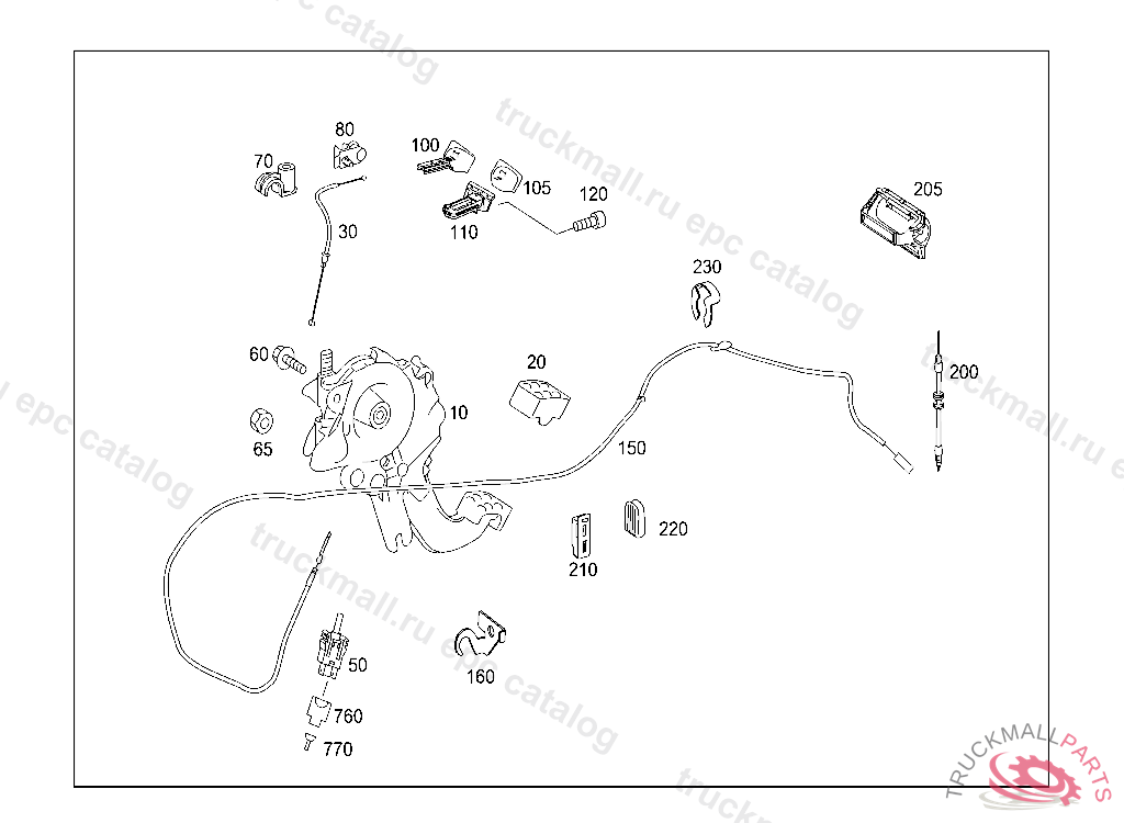 BRAKE CABLE , FIRST EXHAUST STOCK OF OLD PARTS UP TO IDENT NO. A 06136520070605, Replaced By: A2514202085