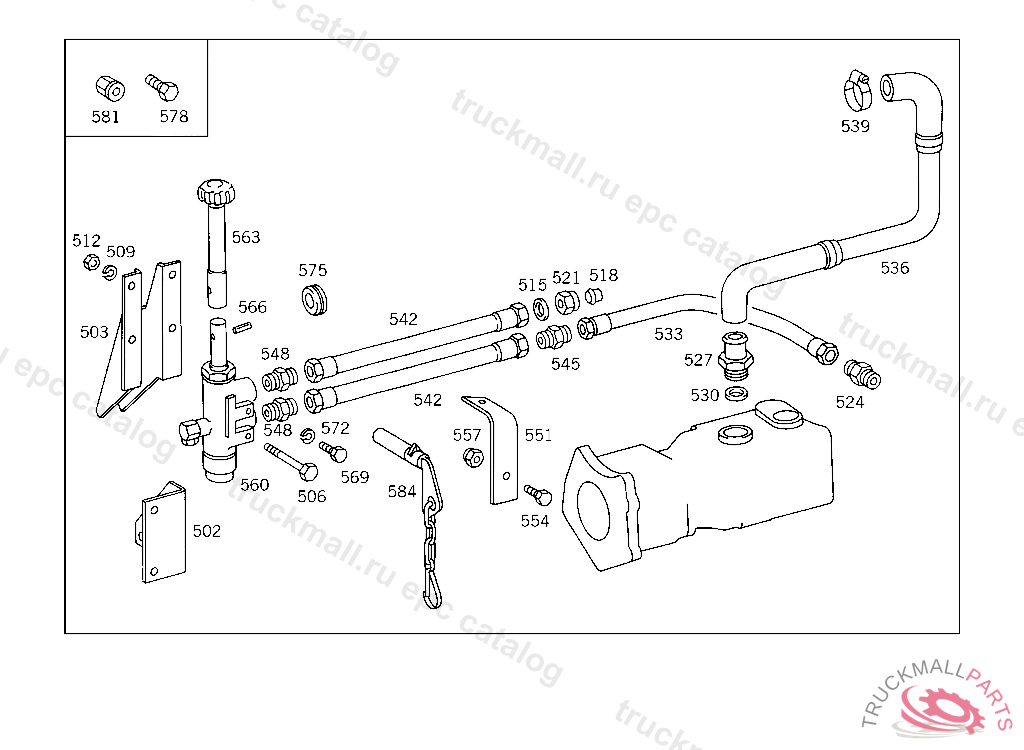 LINE FROM OIL TANK TO PUMP, DUMPER PLATFORM AND COMPONENTS,SPARE WHEELFIXTURE,AND DUMPER VALVE OPERATING MECHANISM,SHOULD BE ORDERED FROM MESSRS F.X. MEILLER4 155917