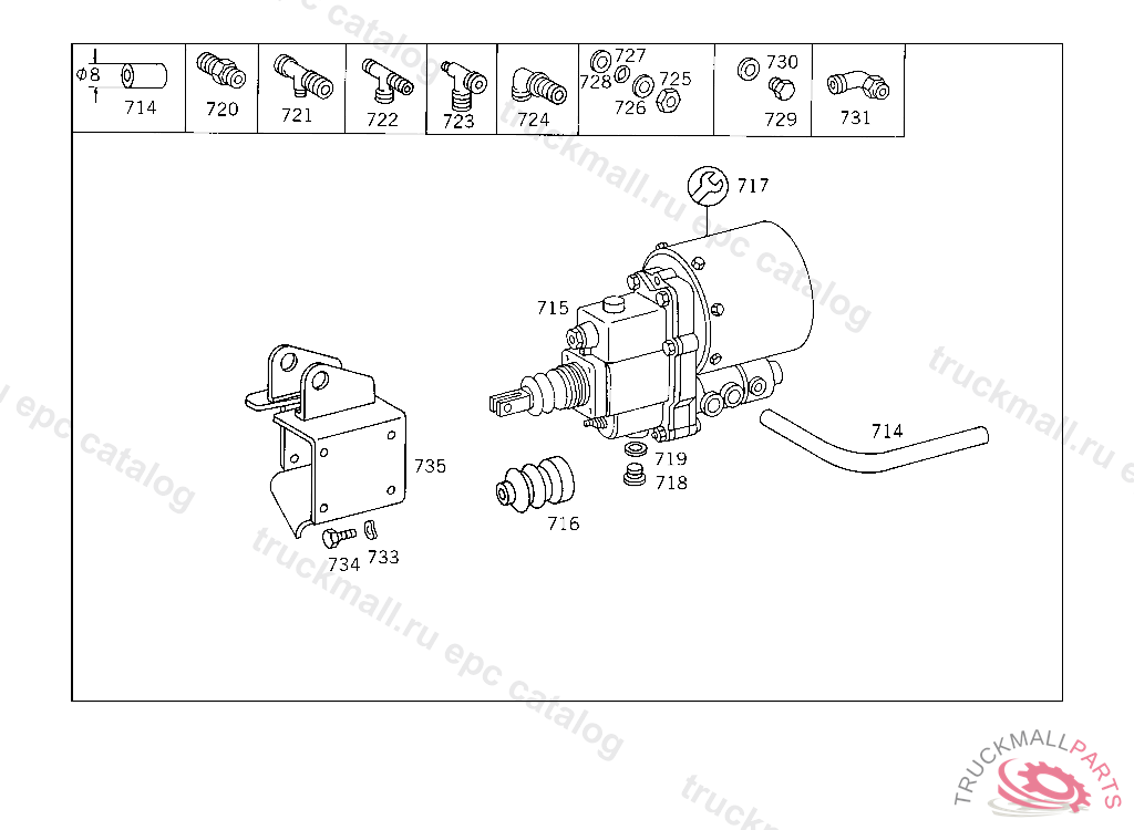 BRAKE CYLINDER , EXHAUST STOCK OF OLD PARTS NUMBER FIRST UP TO CHASSIS 4 847617, Replaced By: A0014318514