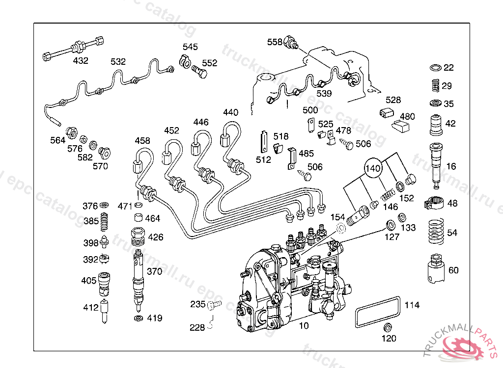 LINE CYLINDER NO.4, ONLY APPLICABLE TO ENGINES WITH CAMSHAFT DRIVEN INJECTION TIMING DEVICE 340.930 FROM ENGINE 084456