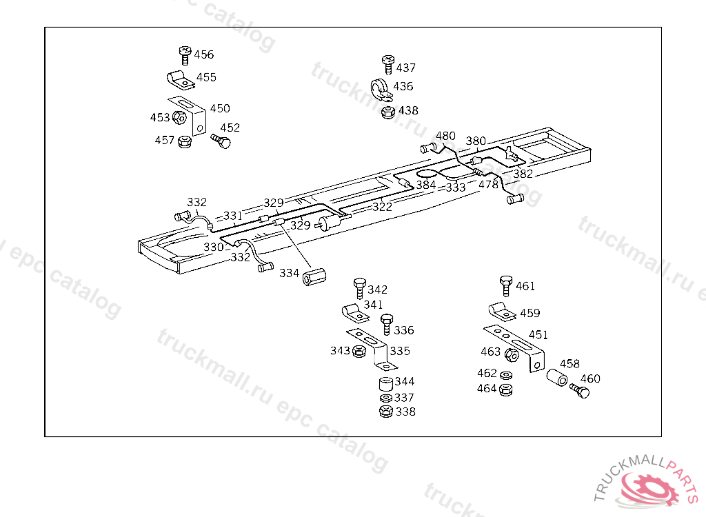 LINE FROM DISTRIBUTOR TO BRAKE HOSE ON REAR AXLE 415 MM,4 478330