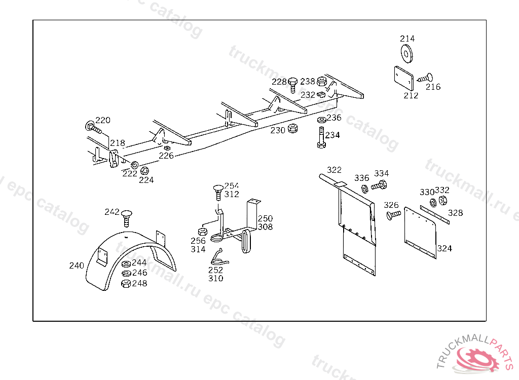 SUBSTRUCTURE (AUXILIARY FRAME),4 155918 DUMPING PLATFORM AND COMPONENT PARTS,INCLUSIVE OF SPARE WHEEL MOUNTINGS,SHOULD BE ORDERED FROM THE RESPECTIVE PLATFORM MANUFAC TURERS,MESSRS.F.X.MEILLER,MUNICH