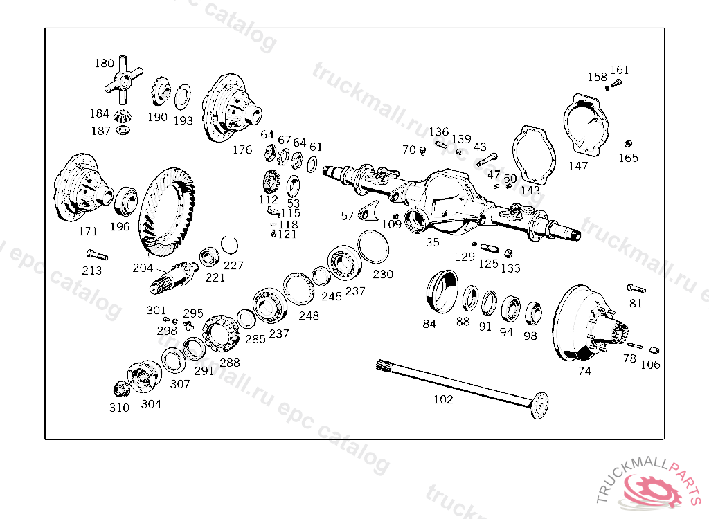 AXLE HOUSING WITH DIFFERENTIAL CASE BESARING CAPS, UP TO REAR AXLE 321.0/1-058524 OR UP TO CHASSIS 002010 AND FOOTNOTE 8