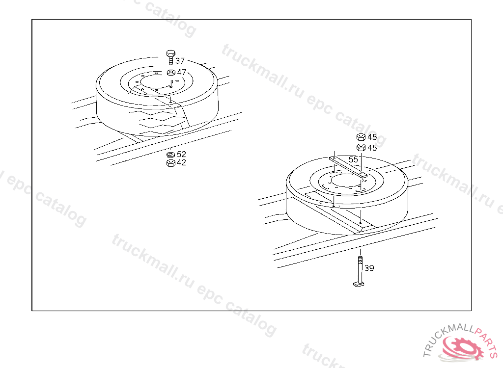 MOUNTING PLATE SPARE WHEEL TO CROSS MEMBER, USED WITH AIR BRAKE,FROM CHASSIS A 059729 ALSO INSTALLED ON: A 059166,A 059217,A 059218,A 059268,A 059276,A 059356-A 059359,A 059411,A 059418,A 059419,A 059525,A 059526,A 059594,A 059613, A 059625,A 059626,A 059647,A 059648.