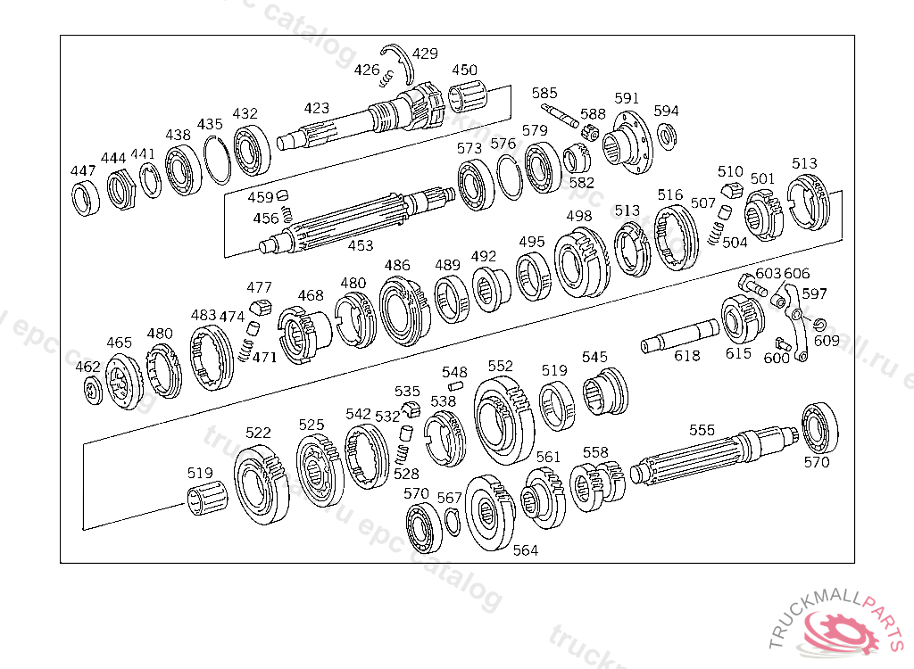 REVERSE IDLER GEAR REVERSE SPEED,A 057455, 341.023,027,032,034,036,038,041,042,043,044,045 FROM IDENT NO. A 057456 SEE SPARE PARTS LIST 713.0, MF 859A 077314, 341.116 FROM IDENT NO. A 077315 SEE SPARE PARTS LIST 713.0, MF 859