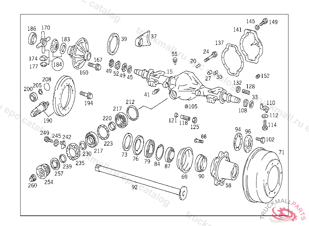 AXLE HOUSING WITH REAR AXLE TUBES AND DIFFERENTIAL CASE BEARING CAPS