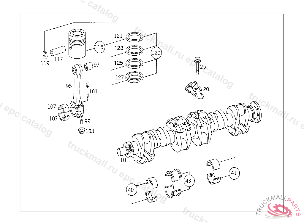 CRANKSHAFT BEARING MAIN BEARING PARTS KIT,FITTING SIZE 0,25, USED FOR NOS.1,2,3,5,6,OR NOS.1,2,3,5 CRANKSHAFT BEARINGS