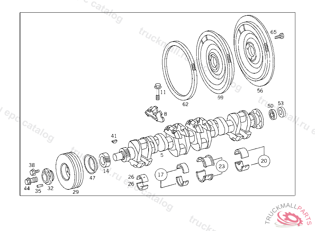 CRANKSHAFT BEARING MAIN BEARING PARTS KIT,FITTING SIZE 0,50, USED FOR NO.7 OR NO.6 CRANKSHAFT BEARINGS,FLYWHEEL END