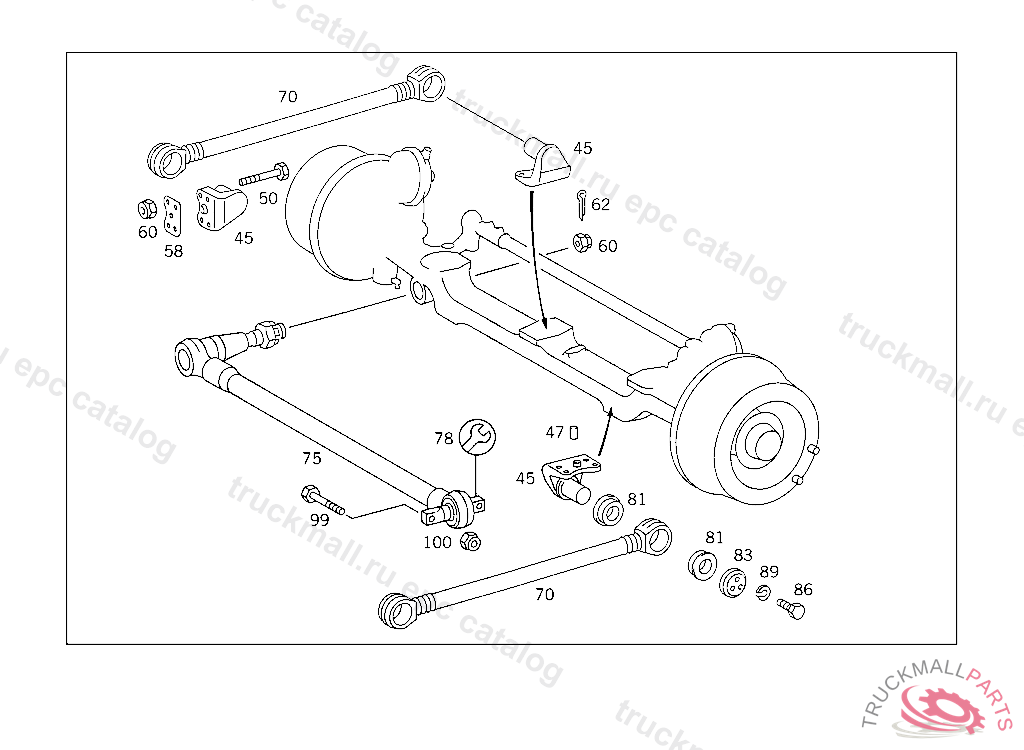 SCREW LONGITUDINAL CONTROL ARM TO BEARING BODY AND TO REAR AXLE