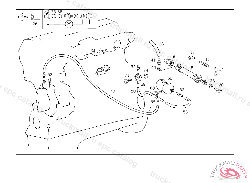 HOSE MASTER SWITCH AND VACUUM SWITCH 40 MM, 023 164780 033 066774 123 158077 130 172061