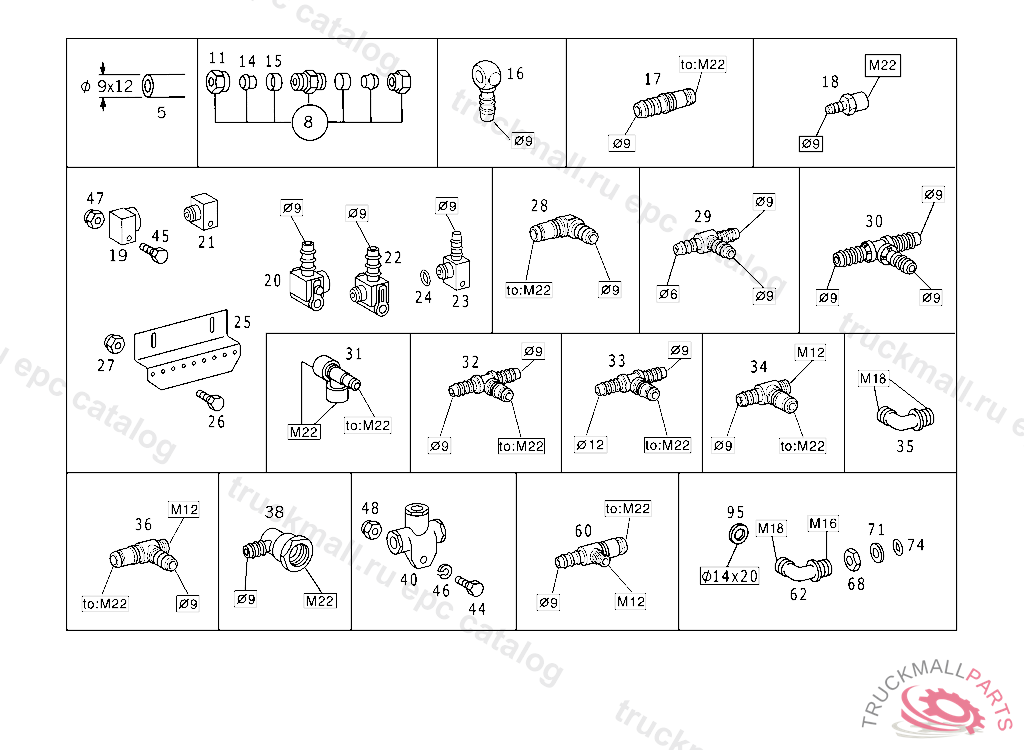 ELBOW FITTING HOSE WIDTH, 9 MM,TO M 22