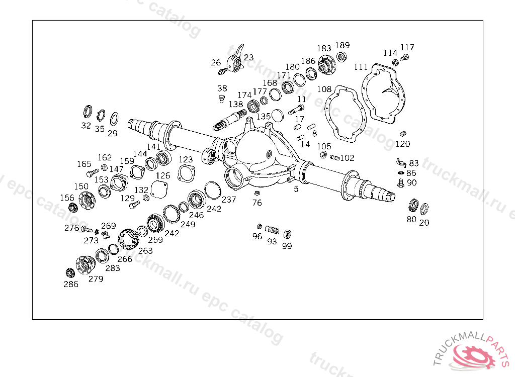 REAR AXLE WITH BRAKES,RATIO: 2, 8:39, UP TO CHASSIS 743131, CKD UP TO CHASSIS 739626
