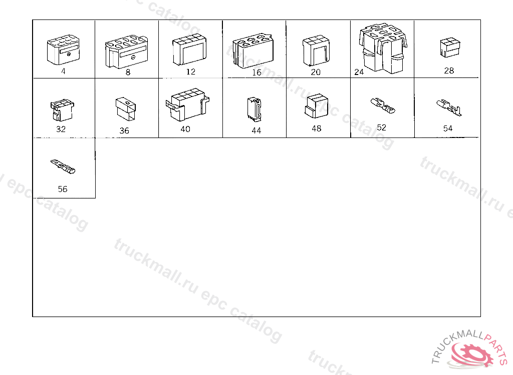PIN BUSHING HOUSING. PLUG HOUSING FROM CHASSIS/CAB CONNECTION POINT TO TACHOGRAPH