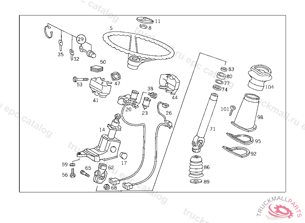 STEERING SHAFTLEMFOERDER, USED WITH SHORT MERCEDES-BENZ CAB