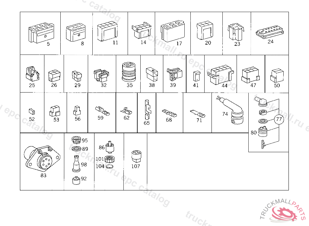 PIN BUSHING HOUSING. PLUG HOUSING FROM CHASSIS/CAB CONNECTION POINT TO TACHOGRAPH