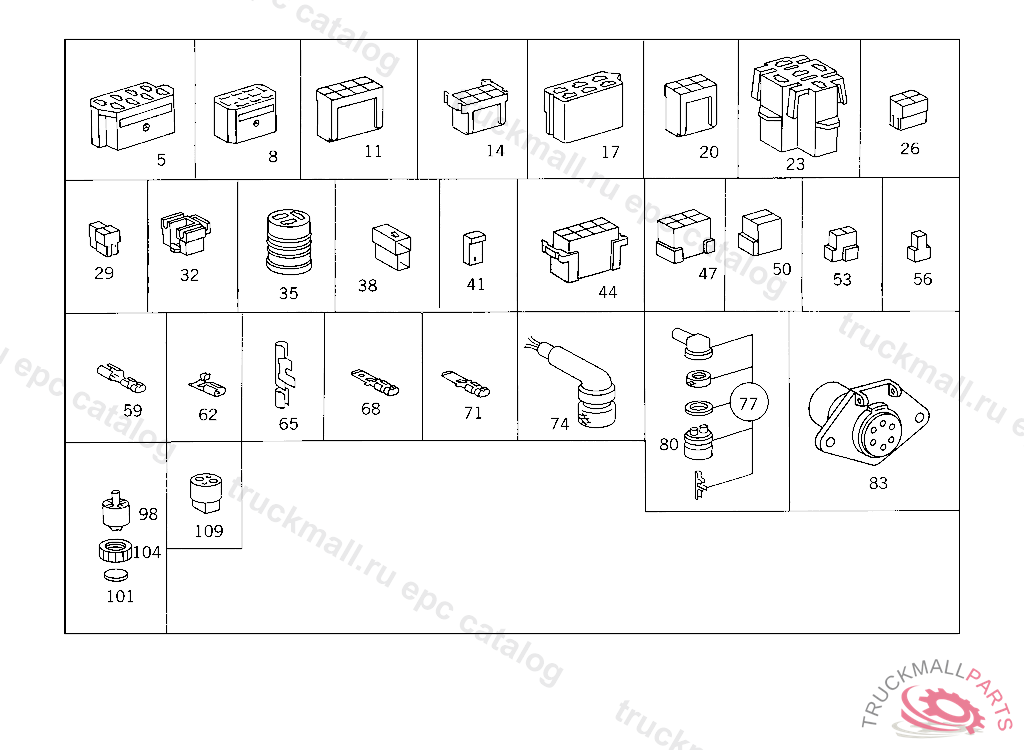PIN BUSHING HOUSING. PLUG HOUSING FROM CHASSIS/CAB CONNECTION POINT TO TACHOGRAPH