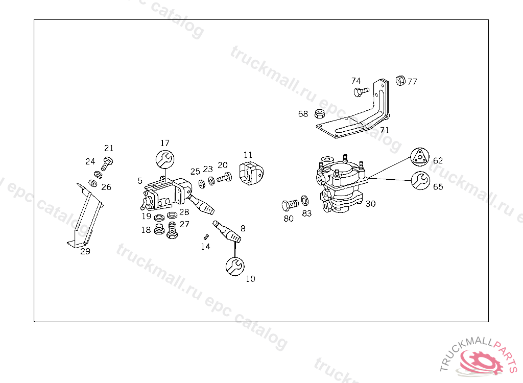 REPAIR KITTO 001 430 58 81/59 81,WABCO, WITH HAND BRAKE VALVE ON ENGINE TUNNEL, FROM IDENT NO. SEE MF 26032