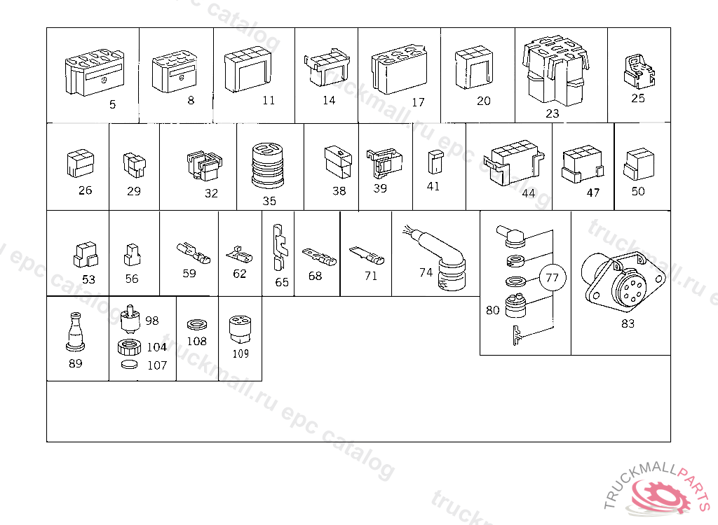 PIN BUSHING HOUSING. PLUG HOUSING FROM CHASSIS/CAB CONNECTION POINT TO TACHOGRAPH